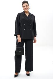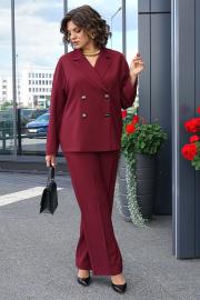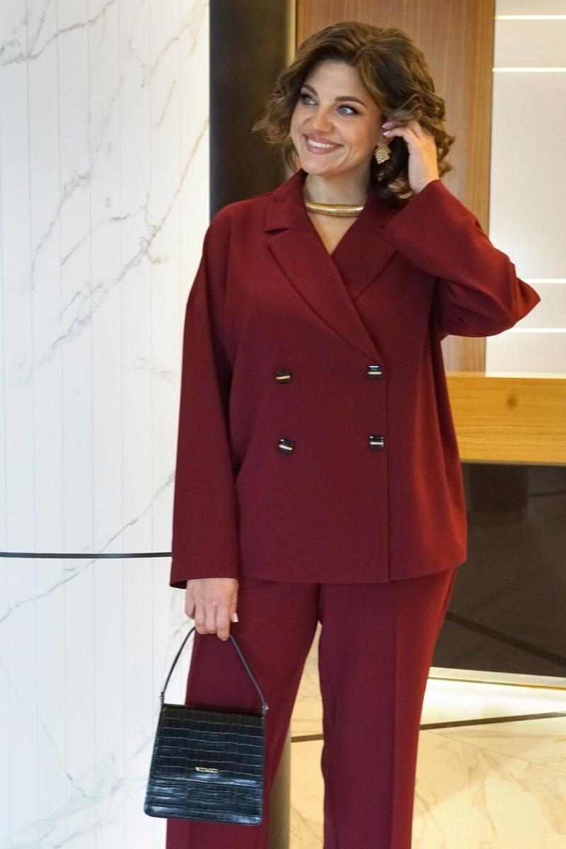 Жакет прямого, свободного силуэта, без подкладки, со спущенной линией плеча, с двух-бортной застёжкой на петли, пуговицы и внутренней застёжкой на петлю, пуговицу. Перед с отложными лацканами. Спинка со средним швом. Рукава втачные, одношовные, длинные (при желании можно отвернуть как цельнокроеная манжета). Воротник отложной с отворотом.
