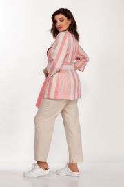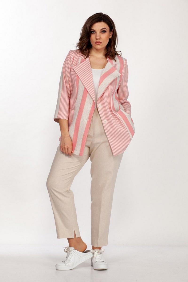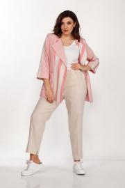 Комплект женский из брюк и жакета. Жакет на подкладке прямого силуэта из текстильного полотна с воротником, рукавами длиной ниже локтя и поясом. Длина жакета в 52р. - 73 см. Длина рукава в 52р. - 49 см. Длина жакета в 58р. - 74 см. Длина рукава в 58 р. - 50 см. Брюки высокой посадки, прямого зауженного к низу силуэта с карманами и поясом на резинке. Длина брюк - 93 см.