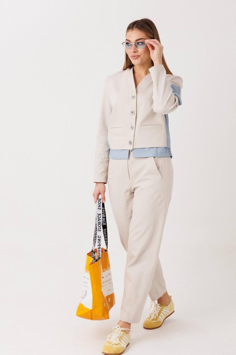 Элегантный брючный комплект в нежном фисташковом оттенке — стильное решение для создания актуального и утончённого образа. Свежий цвет придаёт лёгкость и современное звучание классическому силуэту.