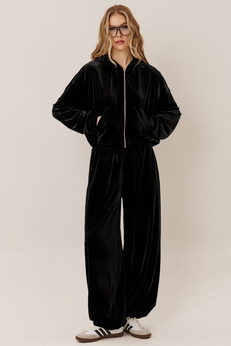 Один из хитов сезона в коллекции от GO - шикарный велюровый костюм! Худи на молнии вместе с широкими брюками - лучшее решение для Вас! Худи: два размера - 42-44, 46-48 р металлическая молния по переду свободное облегание удобные карманы кенгуру комфортный капюшон низ худи на регулируемой резинке Брюки: комфортная посадка пояс прошивной с резинкой и шнуром удобные боковые карманы на передних половинках низ брюк на регулируемой резинке Длина худи по спинке от горловины: 51-53 см Длина рукава худи с плечом от горловины: 79-81 см для роста 170-176 см; Полуобхват груди худи: 42-44 р - 64 см, 46-48 р - 72 см Длина брюк по боковому шву с поясом: 107-110 см для роста 170-176 см Полуобхват бедер брюк: 42-44 р - 58 см, 46-48 р - 62 см