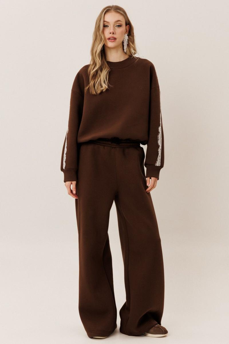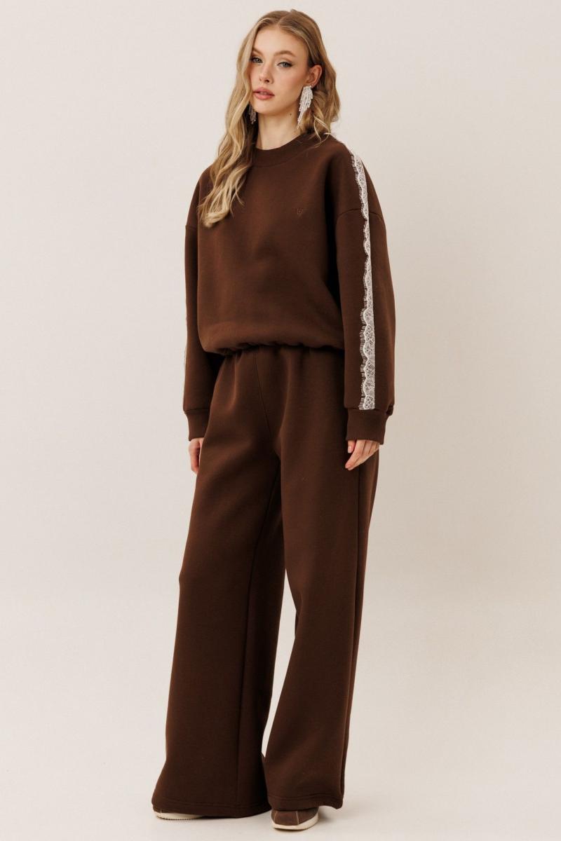 Найден рецепт хорошего настроения! Главные ингредиенты - супер комфортный костюм от GO! Свитшот: два размера 42-44 и 46-48 горловина и манжеты из кашкорсе вышивка в цвет с левой стороны переда контрастный кружево от горловины до манжеты низ на регулируемой резинке Брюки: два размера 42-44 и 46-48 комфортная посадка пояс прошивной с резинкой и шнуром накладные карманы на задних половинках низ брюк на регулируемой резинке Длина свитшота по спинке: 52 см для роста 170-176 Длина рукава от горловины: 71-73 см Полуобхват груди свитшота: 42-44 р- 66 см, 46-48р - 100 см Длина брюк по боковому шву с поясом: 109-112 см для роста 170-176 см Полуобхват бедер: 42-44 р - 57 см, 46 - 48р - 61см