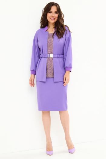 Комплект женский брючный. Джемпер свободного кроя, изготовлен из трикотажного полотна. Перед разрезной с фигурным низом. Горловина обработана воротником -хомут. Спинка цельнокроеная. Декором служит вышивка — аппликация. Брюки женские, средней посадки выполнены из экокожи. Обработаны боковые карманы. Пояс на резинке. На передних деталях брюк застрочен кант