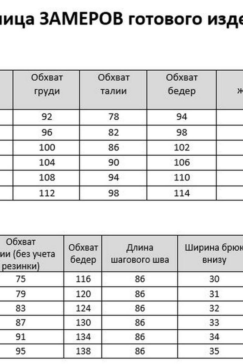Размер Обхват груди (см) Грудь Обхват талии (см) Талия Обхват бедер (см) Бедра
