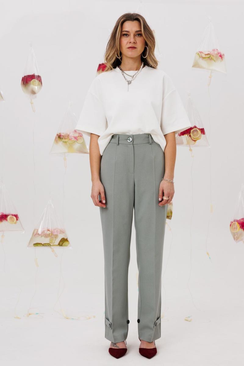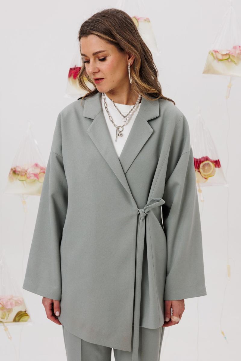 Комплект состоит из брюки и жакета. Брюки прямого кроя на поясе. Идеальная посадка лекал подчеркнет ваши линии. По низу брюк расположена пата благодоря которой можно заузить брючины. Длина - 107 см. Жакет - кимоно, на подкладке. По переду застежка на завязывающиеся в бант ленты. Идеальныйц жакет для создания мягкого образа. если вам нужно быть в офисс коре, но вы не хотите носить строгие линии, то этот жакет точно для вас.