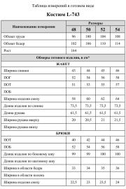 Таблица размеров