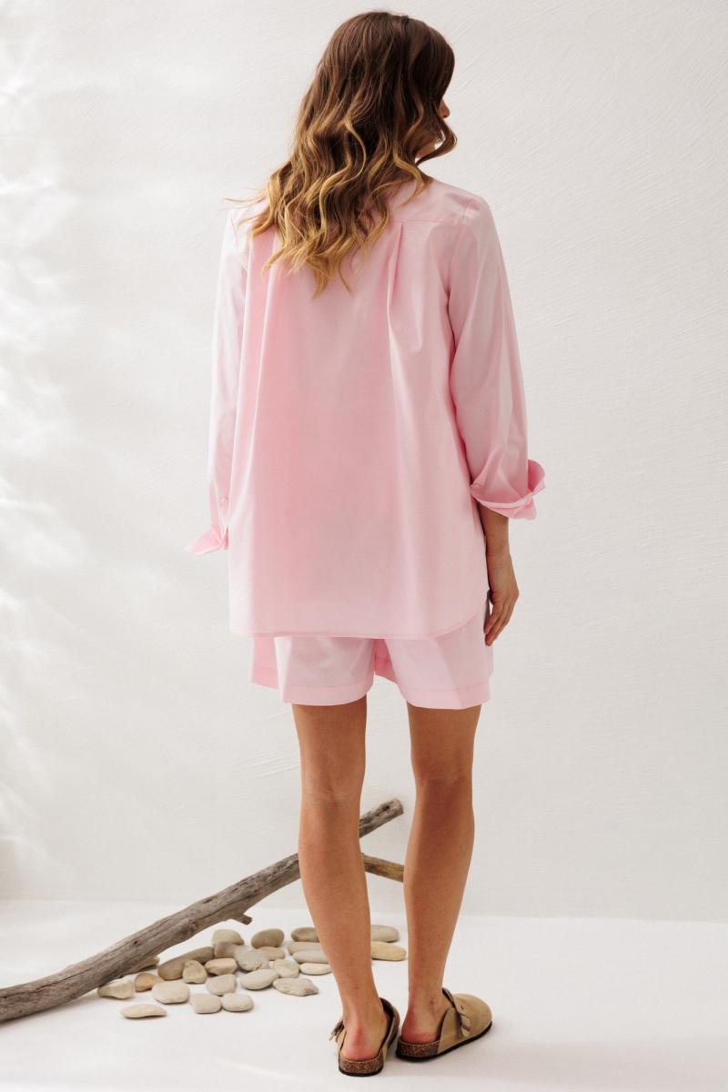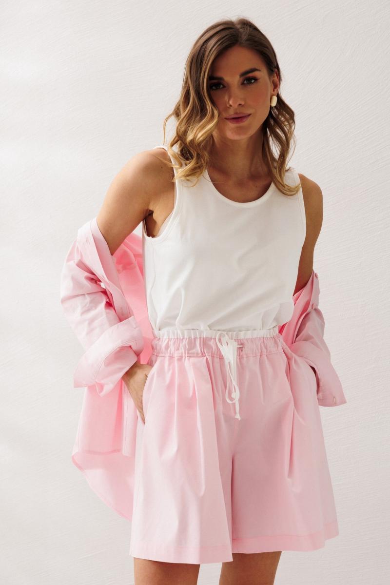 Стильный комплект, состоящий из свободной рубашки и шорт современного актуального кроя и майки-топа.