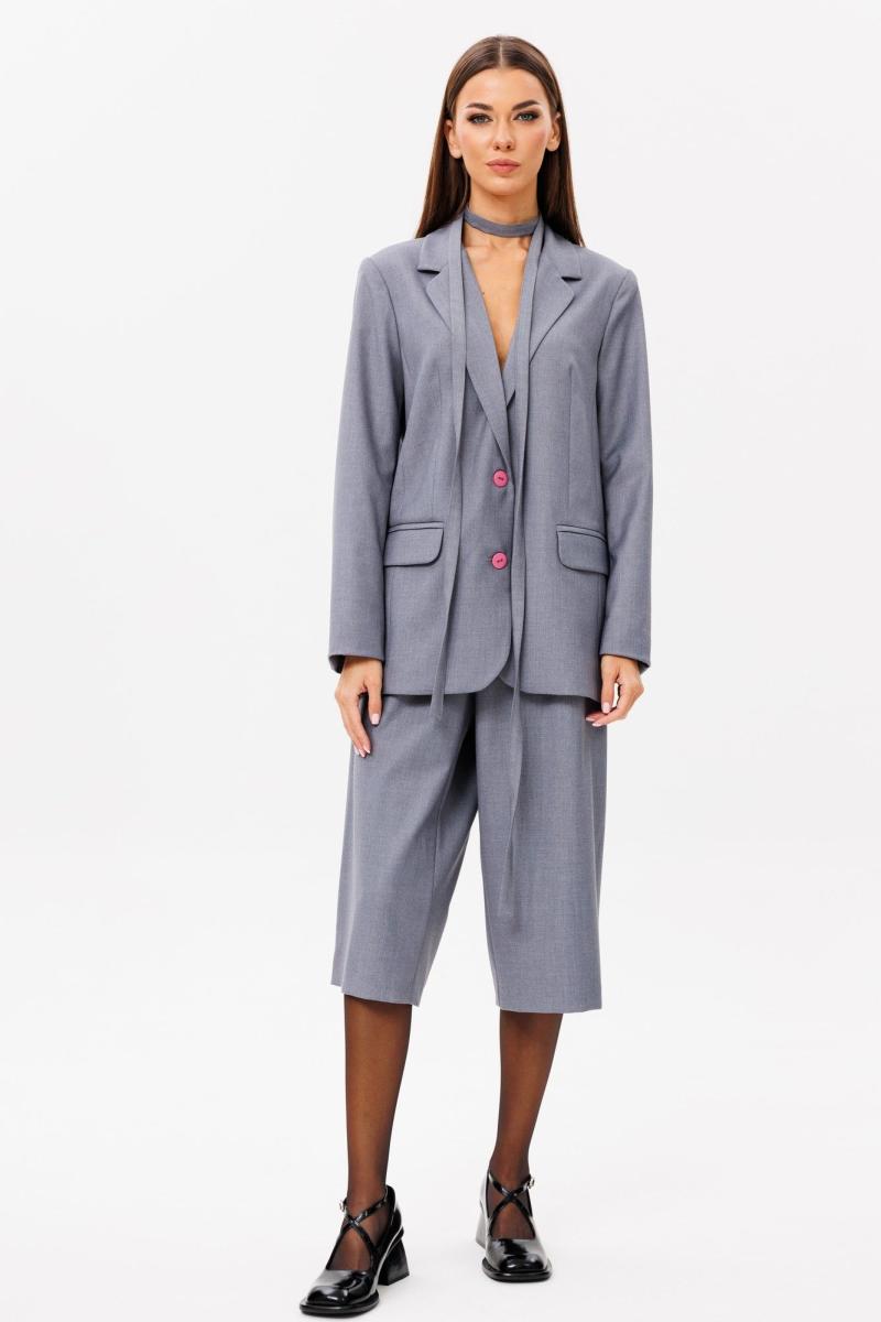 Стильный гармоничный комплект, состоящий из жакета и свободных укороченных брюк- капри.