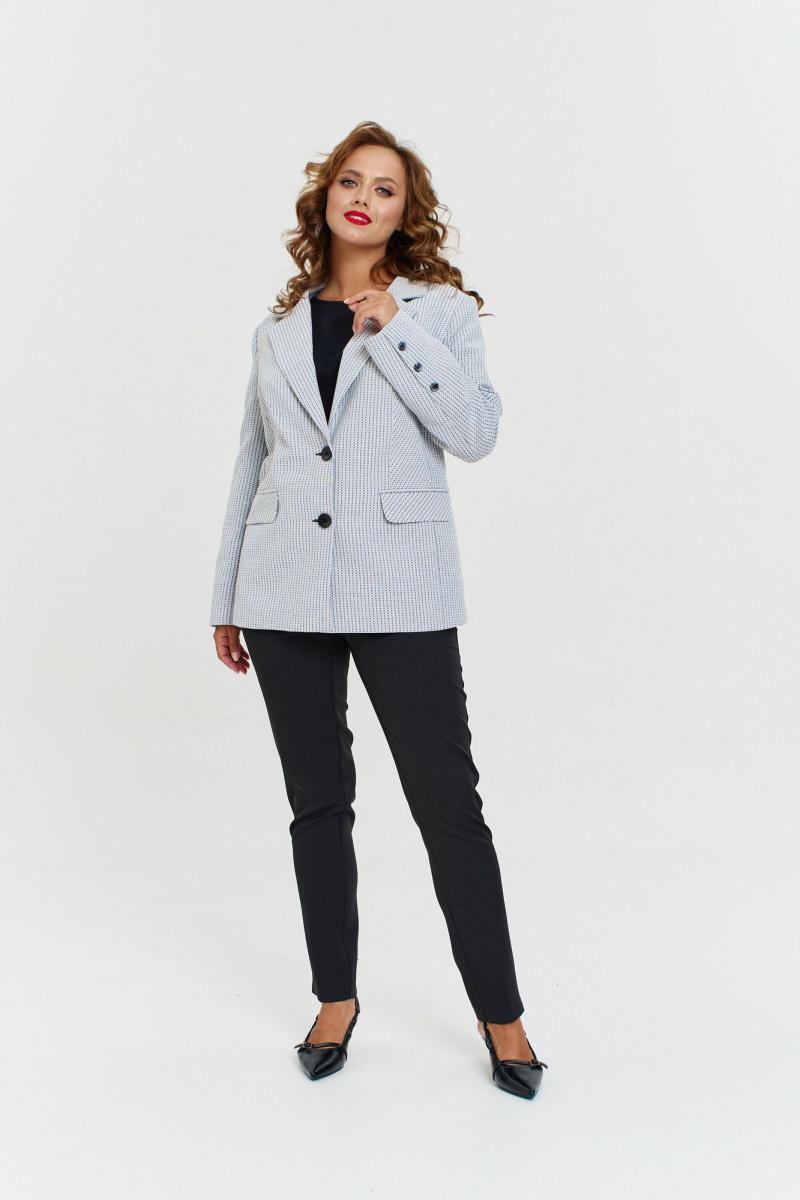 Жакет полуприлегающего силуэта из костюмной ткани (не тянется) на подкладке. По переду