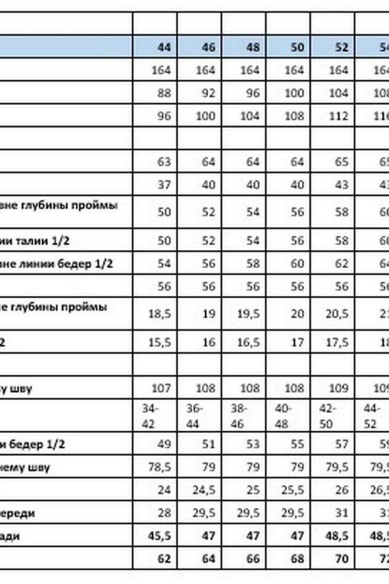 Таблица размеров