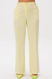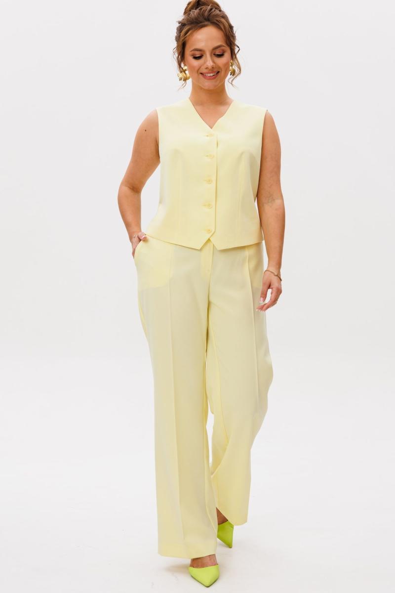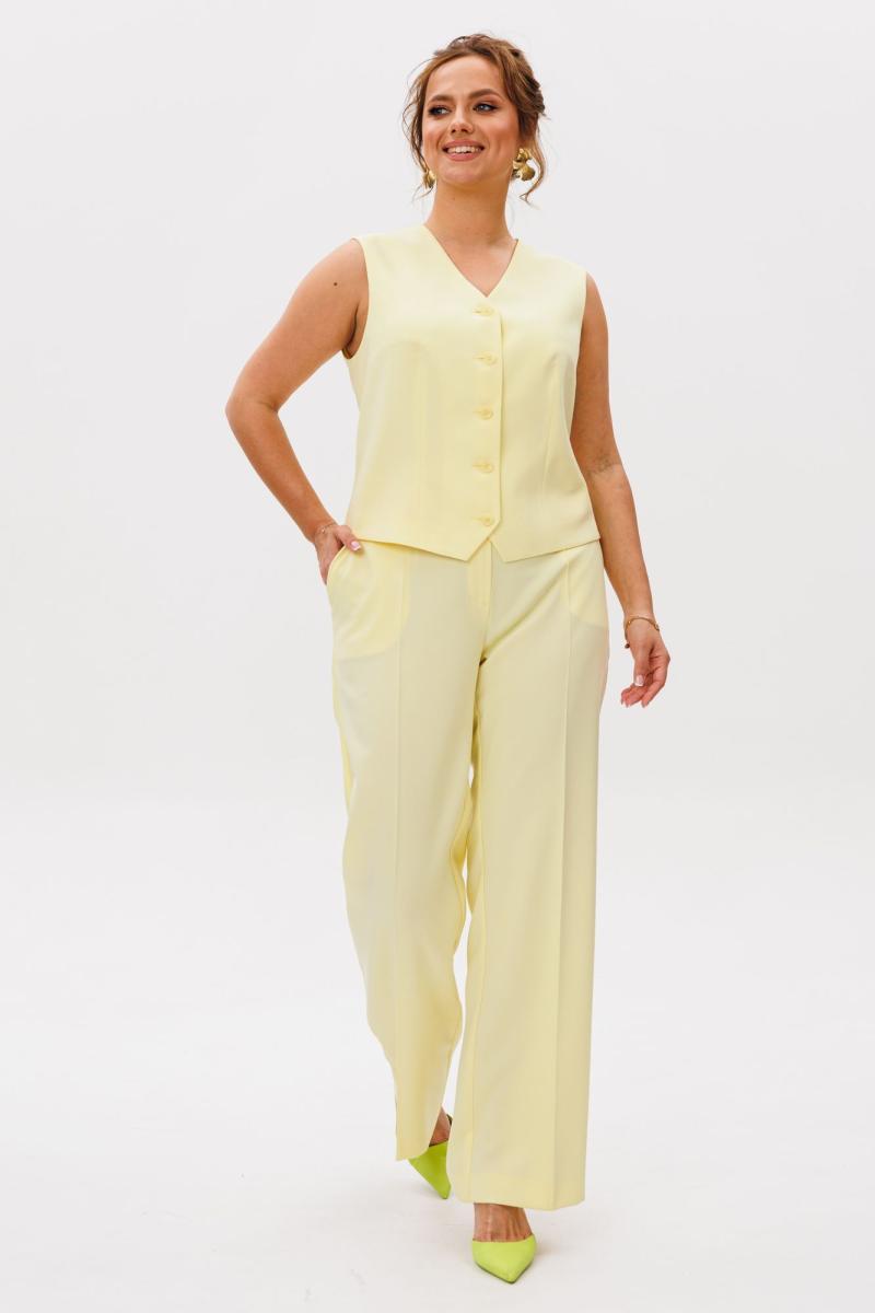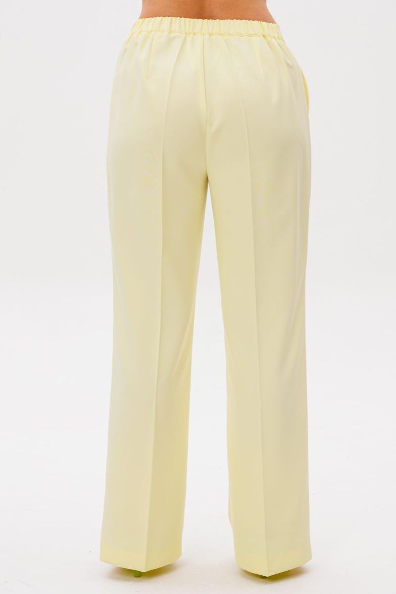 Брюки свободного прямого кроя с высокой посадкой, с наклонными карманами в боковых швах, по срезу банта - застежка-молния. Верхний срез оформлен поясом с эластичной резинкой по задней половинке.