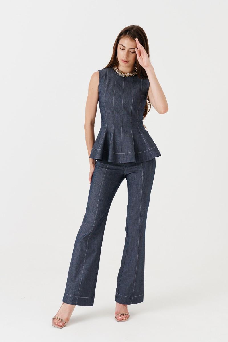 Эффектный костюм из премиального денима с лёгким мерцанием сочетает в себе повседневный стиль с гламуром и утончённостью. Этот тренд позволяет носить джинсовые вещи не только в повседневной жизни, но и создавать запоминающиеся вечерние образы, подчёркивая вашу индивидуальность.