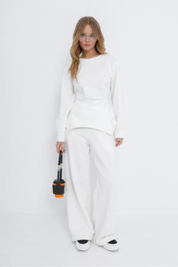 Детали: жакет свободного покроя, прямой силуэт, застежка на петли и пуговицы, функциональные карманы, жакет на подкладке. Жилет полуприлегающего силуэта, талиевые вытачками, застежка на петли и пуговицы, функциональные карманы, фигурный низ, на подкладке. Брюки с высокой посадкой на притачном поясе со шлевками, застежка на молнию и пуговицу, боковые карманы, передние половины с заутюженными стрелками и небольшими складками. Пояс брюк прямой, без резинки.