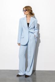 Костюм-двойка из оверсайз жакета с расширенной линией плеч и прямых широких брюк со стрелками.