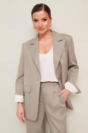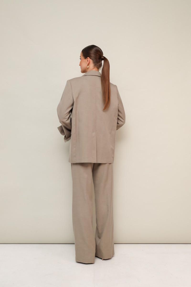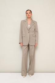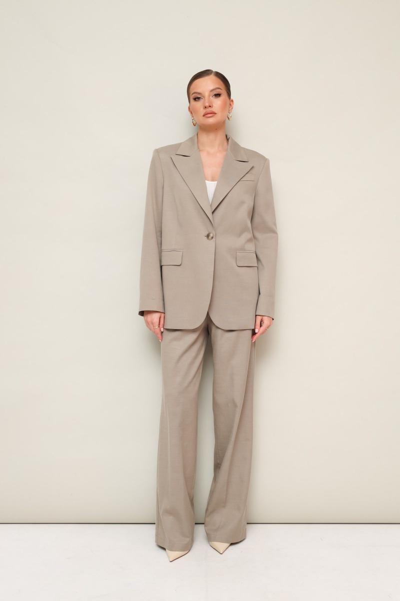 Стильный 3-предметный комплект, состоящий из жакета, топа и брюк, выполнен из натуральной ткани с высоким содержанием вискозы.