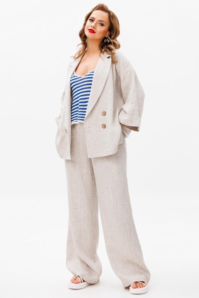 Элегантный и комфортный брючный костюм из 100% натурального льна создан для современных женщин, ценящих стиль и удобство. Свободный крой жакета с эффектной двубортной застёжкой и широкие брюки на высокой посадке формируют расслабленный, но при этом утончённый силуэт. Создайте безупречный образ для офиса, прогулки по городу или отдыха, выбирая комфорт, стиль и натуральность вместе с нашим льняным костюмом!