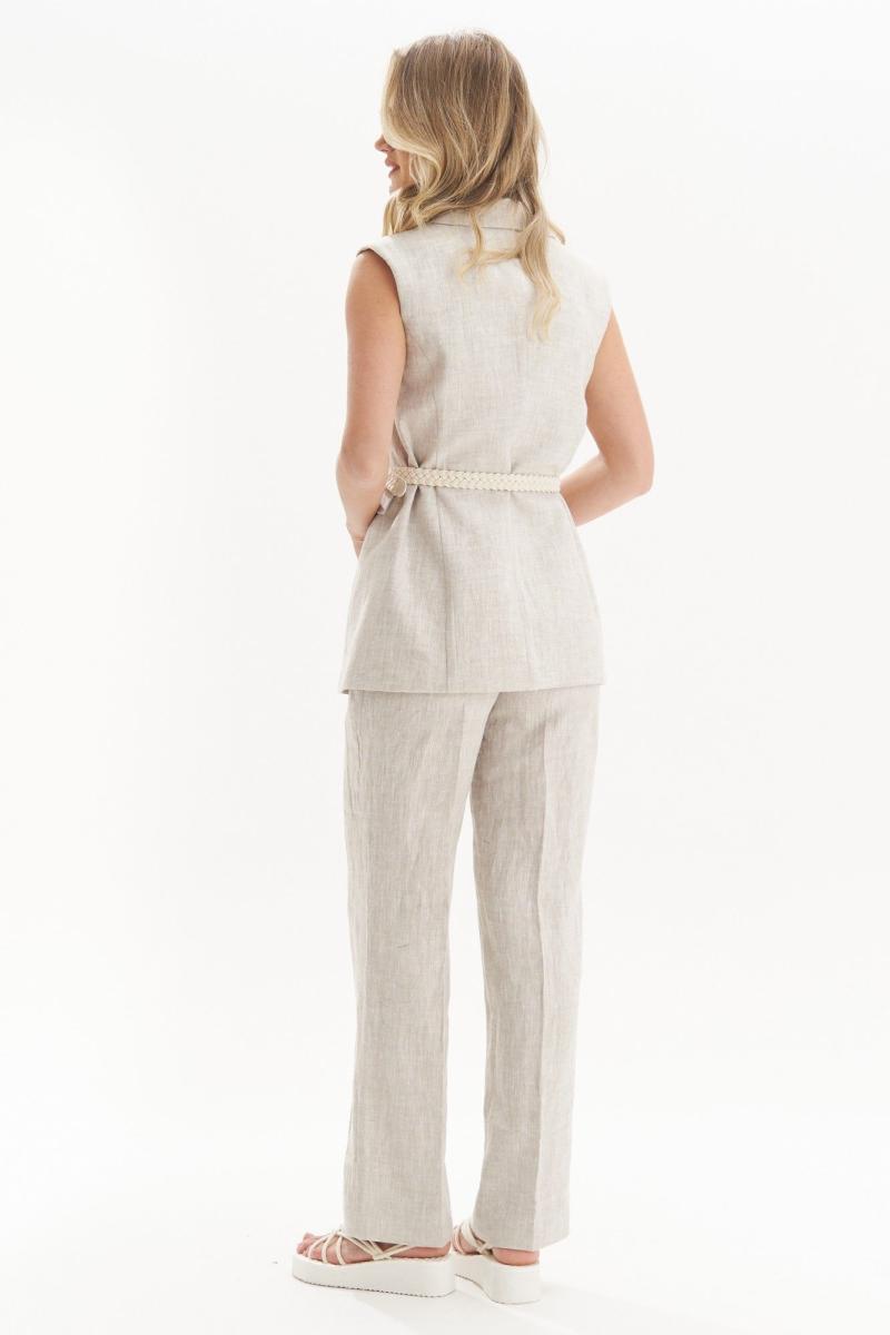Костюм женский 2-х предметный, состоящий из жилета и брюк, выполненных из костюмно-плательной ткани лен, со съёмным декоративным поясом (размер и цвет фурнитуры может незначительно отличаться от фото), для повседневной носки.