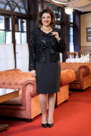 Наряд состоит из двух деталей одежды. Такой наряд может сочетать в себе пиджачок и юбку, или же сарафан с жакетом. Эта пара предметов одежды имеет безукоризненную комбинацию стиля и формы.