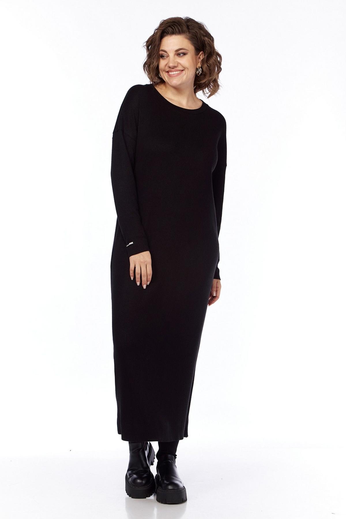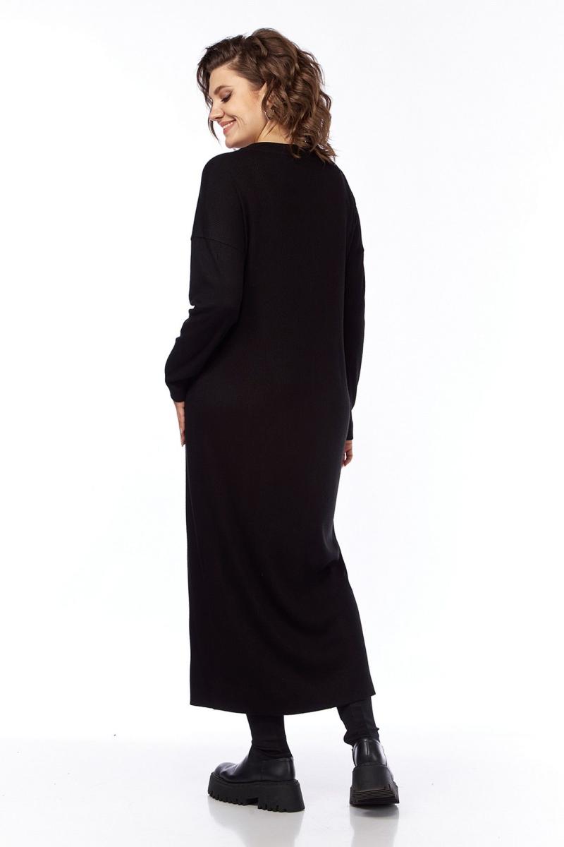 Комплект женский двухпредметный состоит из платья и жилетки. Платье свободного силуэта выполнено из трикотажного полотна ( лапша ). Перед и спинка цельнокроеные. Рукава спущенные. Жилетка выполнена из искусственной кожи на вискозной основе, А — силуэта. Перед со средним швом и асимметричным декоративным элементом. Спинка разрезная по центру. Длина платья по спинке — 127 см, длина плеча + рукав — 73 см. р.50 — ПОГ 51 см ПОБ 54 см, р.52 — ПОГ 53 см ПОБ 56 см, р.54 — ПОГ 55 см ПОБ 58 см, р.56 — ПОГ 57 см ПОБ 60 см. Длина жилетки по спинке — 66 см. р.50 — ПОГ 54 см ПОБ 67 см, р.52 — ПОГ 56 см ПОБ 69 см, р.54 — ПОГ 58 см ПОБ 71 см, р.56 — ПОГ 60 см ПОБ 73 см.
