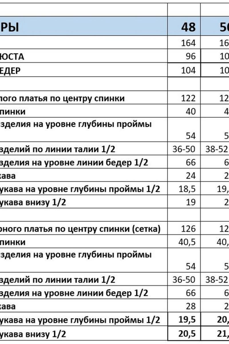 Таблица размеров