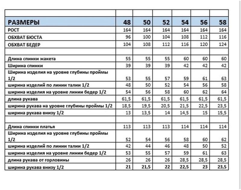 Таблица размеров