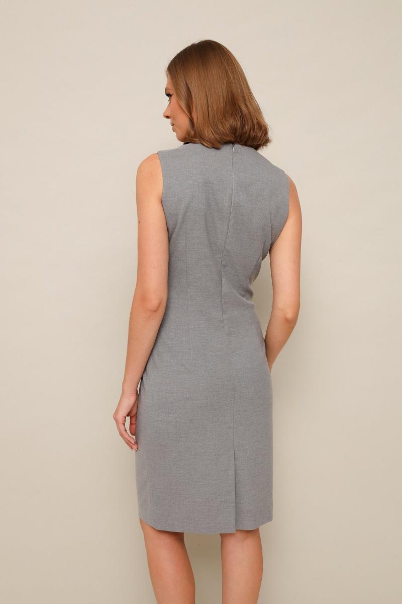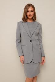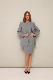 Офисный 2-предметный комплект, состоящий из жакета и платья-футляра. Жакет полуприлегающего силуэта с рельефами и нагрудными вытачками. Застежка центральная на петлю и пуговицу. Воротник пиджачного типа с отложными лацканами. Спереди обработаны карманы в рамку. Спинка с рельефами и средним швом. Рукава двухшовные с вытачными шлицами. Изделие на подкладке. Платье-футляр полуприлегающего силуэта с отрезным лифом и вытачками. Округлый вырез горловины. Спинка с вытачками и с застежкой на потайную тесьму-молнию в среднем шве, переходящим в шлицу.