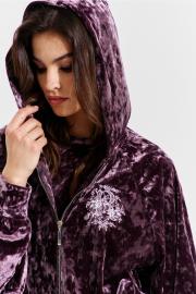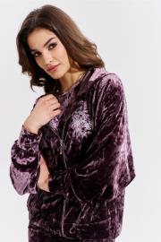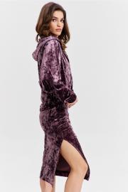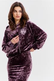 Костюм, состоящий из бомбера и платья. Бомбер свободного кроя, длиной чуть выше линии бедер. Перед с рельефом, в котором обработан карман. По низу переда притачной пояс. Рукава реглан, длинные, по низу с притачной манжетой. По горловине капюшон. На левом переде выполнена авторская вышивка. По переду застежка на декоративную тесьму-«молнию». Платье прилегающего силуэта, длиной чуть ниже середины икры. В правом боковом шве обработан разрез. Горловина округлой формы, обработана притачной планкой. Рукава одношовные, втачные, длиной до локтя.