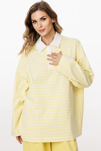 Блузка прямого силуэта, длиной чуть ниже талии с рукавами длиной выше локтя, с нагрудными вытачками по переду и застёжкой на потайную молнию от низа до уровня лопаток и на навесную петлю и пуговицу в верхней части среднего шва. Горловина округлой формы, с перекантом на лицо из отделочного материала. По низу рукавов и низу блузки край с необработанным срезом, с бахромой, по низу рукавов и низу переда настрочена и отделочная тесьма. Блузка на подкладке.