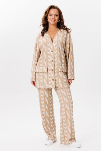 Костюм с юбкой в спортивном стиле стал излюбленным среди сторонниц удобной и комфортной одежды. Аутфиты в street-style полюбились миллионам девушек, ведь теперь костюм с юбкой можно спокойно носить с кроссовками или кедами. Такой лук выглядит трендово, изысканно и модно. Блузон свободного покроя со слегка заниженной линией плеча и рубашечным рукавом длиной 7/8. Полочка с центральной застежкой на кнопки и притачной планкой. На планке декоративная геометрическая строчка. Воротник-стойка с регулирующейся кулисой и люверсами. По низу блузона цельнокроеный пояс с эластичной тесьмой. По низу рукава-подтягивающая пата. Юбка свободная, упрямленная, на притачном поясе с эластичной тесьмой, люверсами и регулирующем поясе-завязке. По переднему полотнищу - боковые наклонные карманы. По боковым швам - разрезы. Длина юбки около 85 см. Длина блузона около 67 см. Длина рукава около 48 см