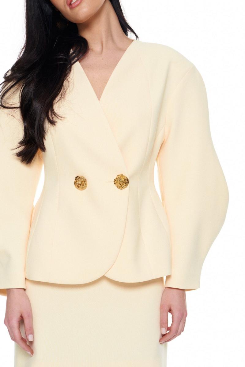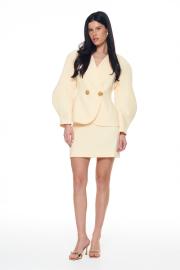 Костюм из плотной поливискозы состоящий из жакета и мини-юбки. Жакет на подкладке приталенного силуэта придаёт фигуре эффект песочных часов. Архитектурные рукава делают образ сложным и изысканным. Застежка на две большие золотые пуговицы. Юбка-мини на подкладке с застёжкой на потайную молнию сзади. Длина жакета 42-46р - 60,5см; Длина юбки 42-46р - 45см.