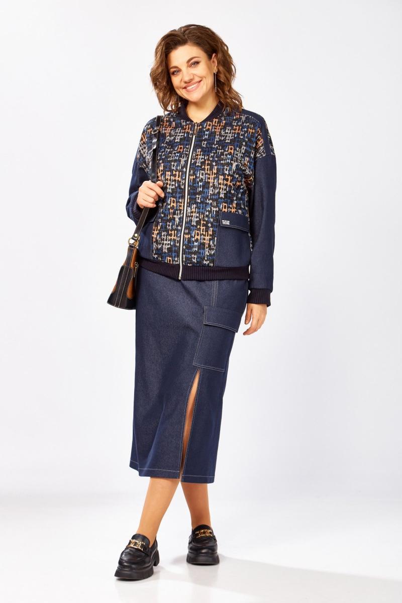 Юбочный костюм двойка для повседневной носки, идеальное сочетание комфорта и стиля! Модный фасон, комбинация джинса и трикотажа, а также актуальный подбор по цвету подчеркнет ваш изысканный вкус в моде. В нем вы будете выглядеть потрясающе! Бомбер свободного силуэта без подкладки, на молнии, с накладными карманами, воротник стойка, рукав втачной, линия плеча спущена. Джинсовая юбка, без подкладки, прямая, на резинке невероятно комфортная, не будет сковывать ваши движения, без застежки, с разрезом по ноге, накладным карманом и декоративной отстрочкой. Длина бомбера-58 см Длина рукава от горл-74 см Длина юбки-86 см