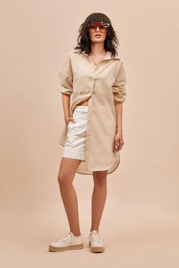 Платье женское нарядное выполнено из текстильной ткани и кружева. Отлетная декоративная часть переда выполнена из сетки с вышивкой. Элементами этой же вышивки украшен рукав. Слегка прилегающий силуэт платья создан за счет нагрудных вытачек, среднего шва спинки и бочков, переходящих на перед. Изделие с горловиной круглой формы, с втачными рукавами длиной 3/4. Спинка однотон прямая. Длина блузки по спинке – 105 см. Длина рукава – 37 см