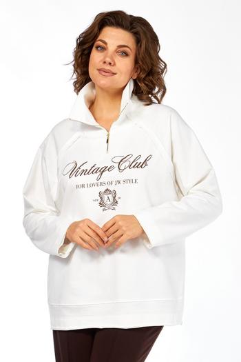 Платье прямого силуэта с цельнокроеным рукавом из трикотажного полотна (эластичное, мягкое, средней плотности). Застежка ассиметричной формы на четыре пробивные петли и пуговицы. Перед с конструктивным фигурным подрезом, с прорезными карманами с втачными концами. Спинка со средним швом. Рукава длиной ¾ с притачными манжетами. Срез переда и плечевых швов обработаны зигзагообразной строчкой нитками контрастного цвета.