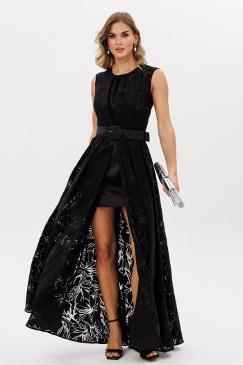 Платье верхняя часть полуприлегающего силуэта, нижняя из трёх воланов собранных на сборку и на подкладке, с застёжкой по плаке на петли, пуговицы, чуть спущенное плечо. Перед с нагрудными выточками. Спинка с талевыми выточками.