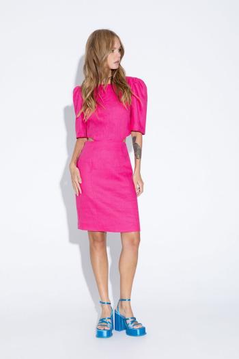 Платье прямого свободного кроя выполнено из яркого полотна цвета яркий лайм. Яркий сочный летний образ. Характеристики: прямой свободный крой, подкладка, фигурный вырез горловины, по переду декоративная сборка с кулисой, рукав в изделии спущен, по верху рукава резинка, по периметру рукава и горловины платье украшено декоративной сборкой из ткани основного изделия, застёжка потайная тесьма молния в среднем шве заднего полотна изделия, по низу нашит волан. Длина по спинке 66 см, длина рукава 49 см.