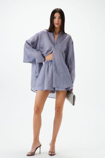 Платье прилегающего силуэта с открытыми плечами выполнено из полотна с пайетками. Характеристики: прилегающий силуэт, подкладка, открытые плечи, верх изделия на резинке. В среднем шве заднего полотна изделия разрез 48 см. Длина изделия 112 см.