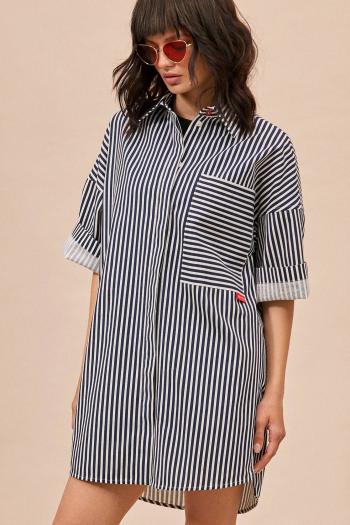Платье-мини свободного кроя с асимметрией. Выполнено из мягкой струящейся ткани чёрного цвета. С подкладкой. Воротник стойка. В среднем шве заднего полотна вырез "капелька". Застёжка на стойке - пуговицы с петельками. Длина по боковому шву справа 60 см, длина по боковому шву слева 117 см