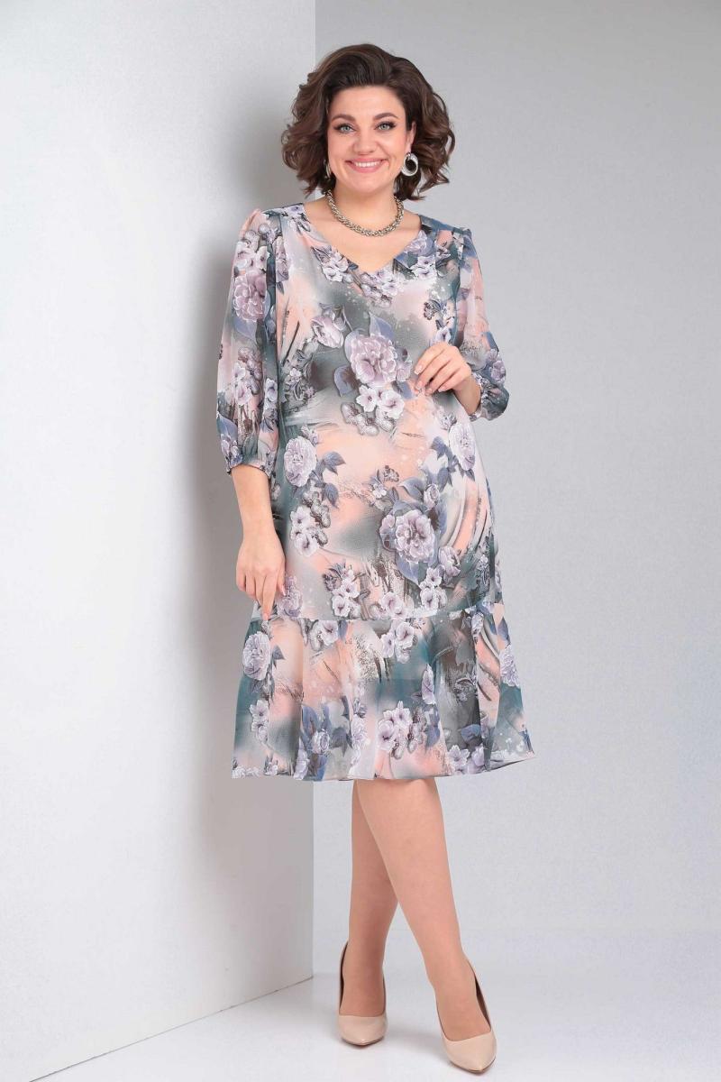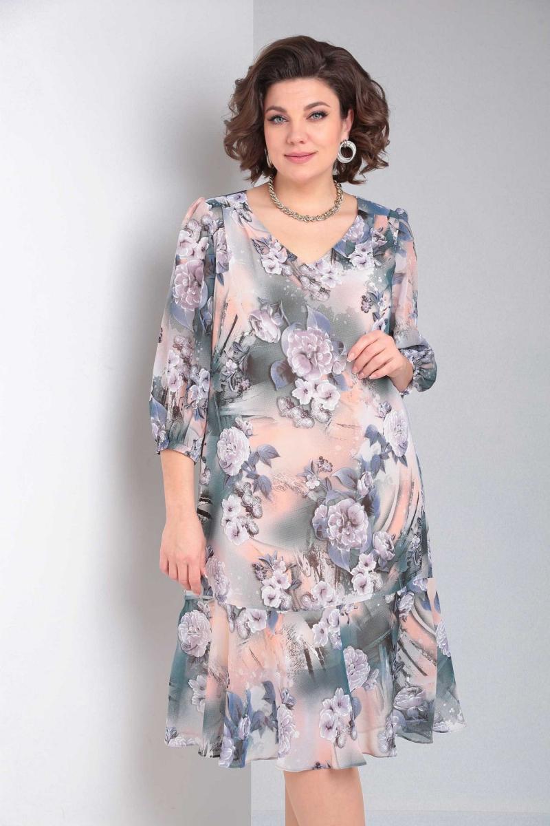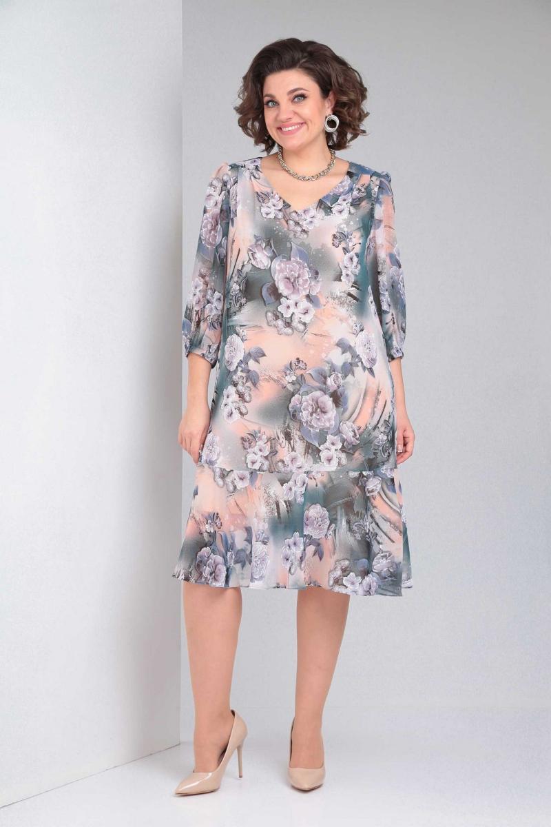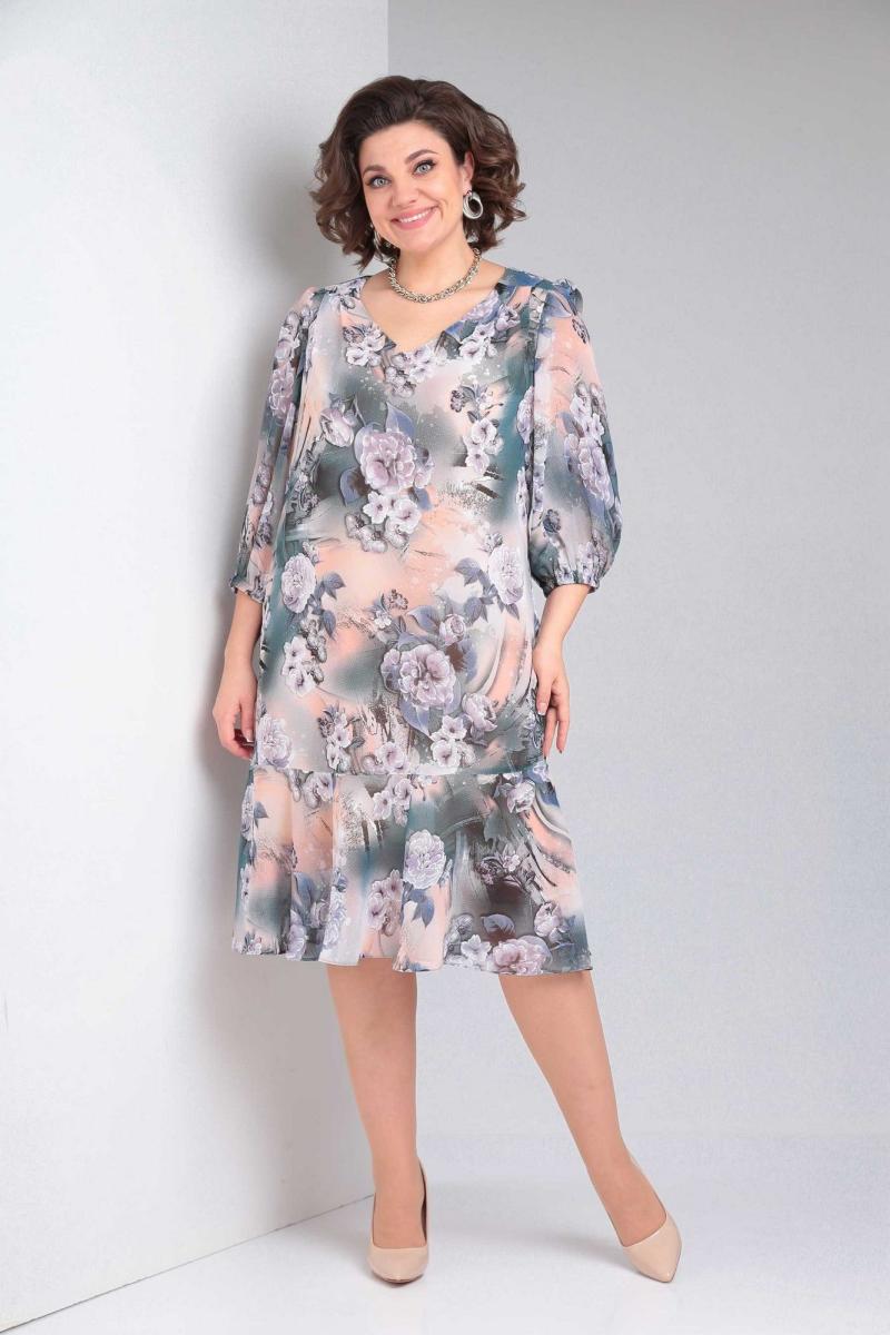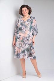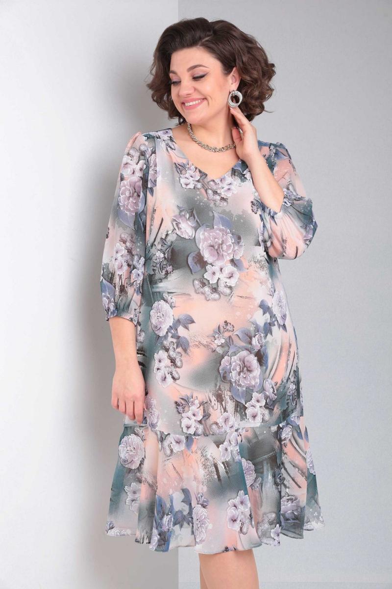 Платье женское свободного силуэта из плательной ткани. Рукав три четверти, силуэт свободный. Горловина V-образная. Перед с кокеткой, из-под которых две складки. Рукав присборен по окату, расширен на резинку по низу. Спинка свободная. По низу платья клешёный волан. Вырез горловины V-образный Длина изделия 107,00 (±2) см. Длина рукава 48 (±1) см. Статус модели нарядно-повседневный Силуэт свободный Объём груди размер 52 – 114 (±2) см. размер 54 – 118 (±2) см. размер 56 – 122 (±2) см. Объём талии размер 52 – 114 (±2) см. размер 54 – 116 (±2) см. размер 56 – 120 (±2) см. Объём бёдер размер 52 – 118 (±2) см. размер 54 – 122 (±2) см. размер 56 – 126 (±2) см. Ширина рукава под проймой размер 52 – 21 (±2) см. размер 54 – 23 (±2) см. размер 56 – 25 (±2) см.с