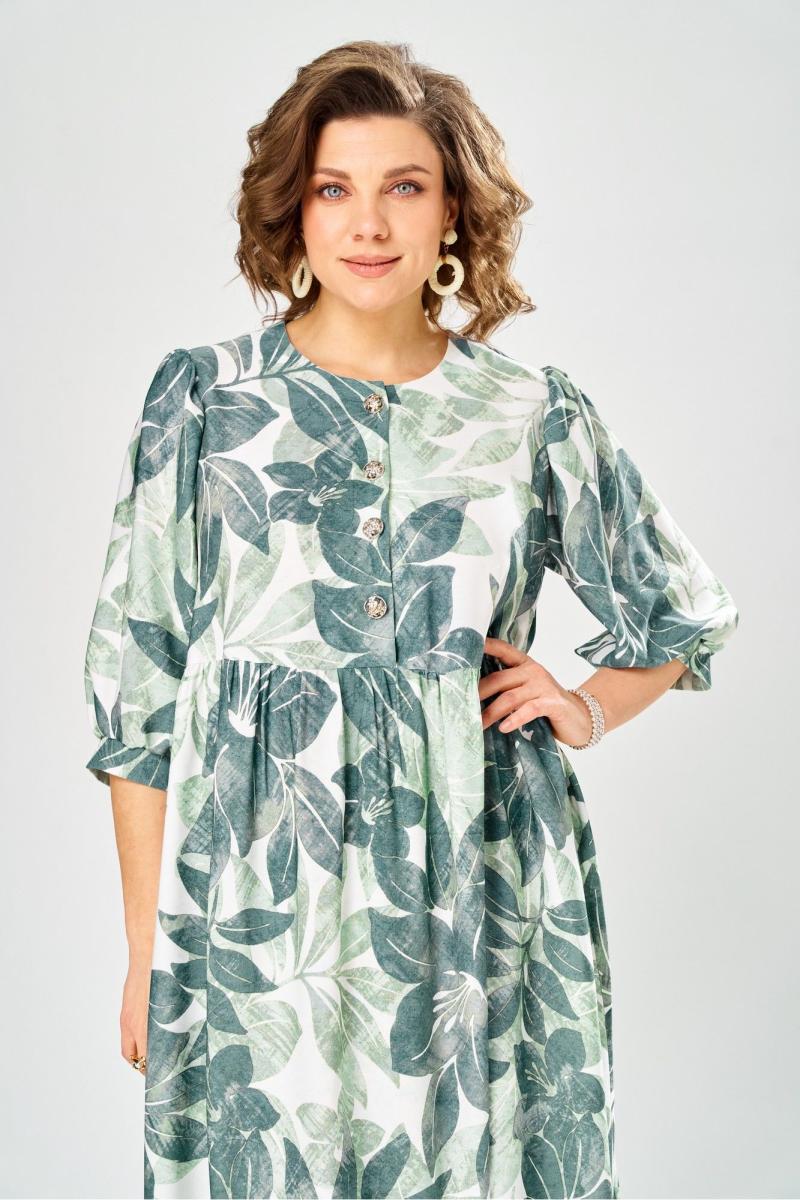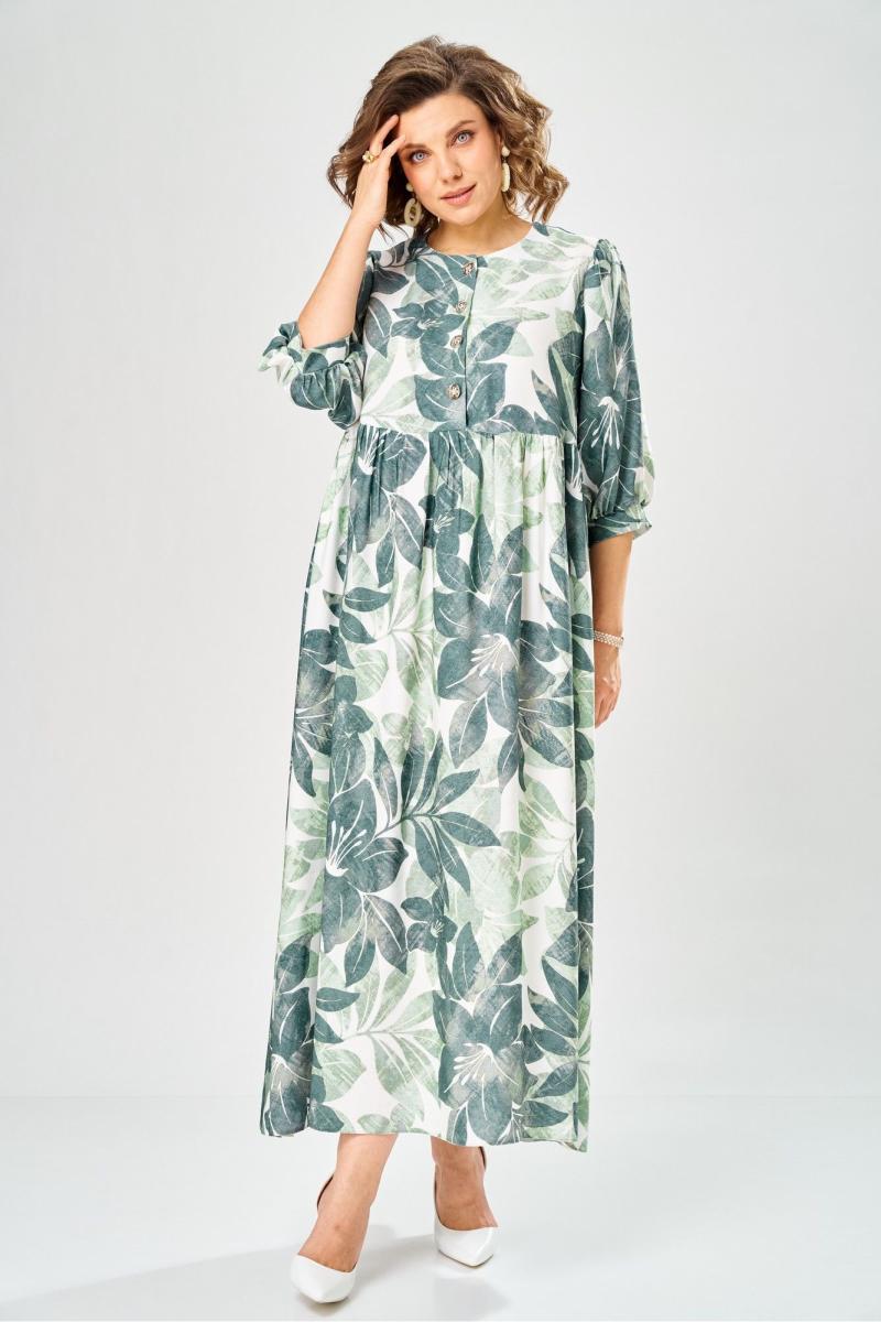Платье со слегка завышенной линией талии. Лиф платья выполнен с застежкой на петли-пуговицы. Рукав втачной одношовный, со сборкой по линии оката, низ рукава оформлен манжетой.