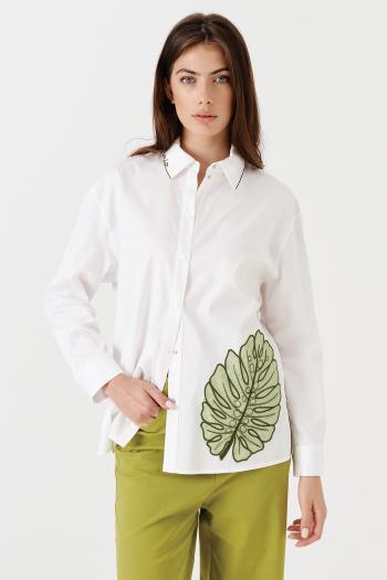 Платье полуприлегающего. Силуэта, с втачным двухшовным рукавом 3/4, с отстегивающимися манжетами. Воротник съемный, рубашечный на стойке с застежкой. Полочка с вертикальным подрезом и фигурным вырезом в верхней части платья и рельефами от подреза до низа изделия. Полочка с центрально застежкой на петли-пуговицы. Спинка со средним швом и талиевыми вытачками. Платье на подкладке.