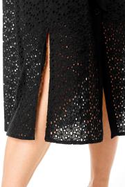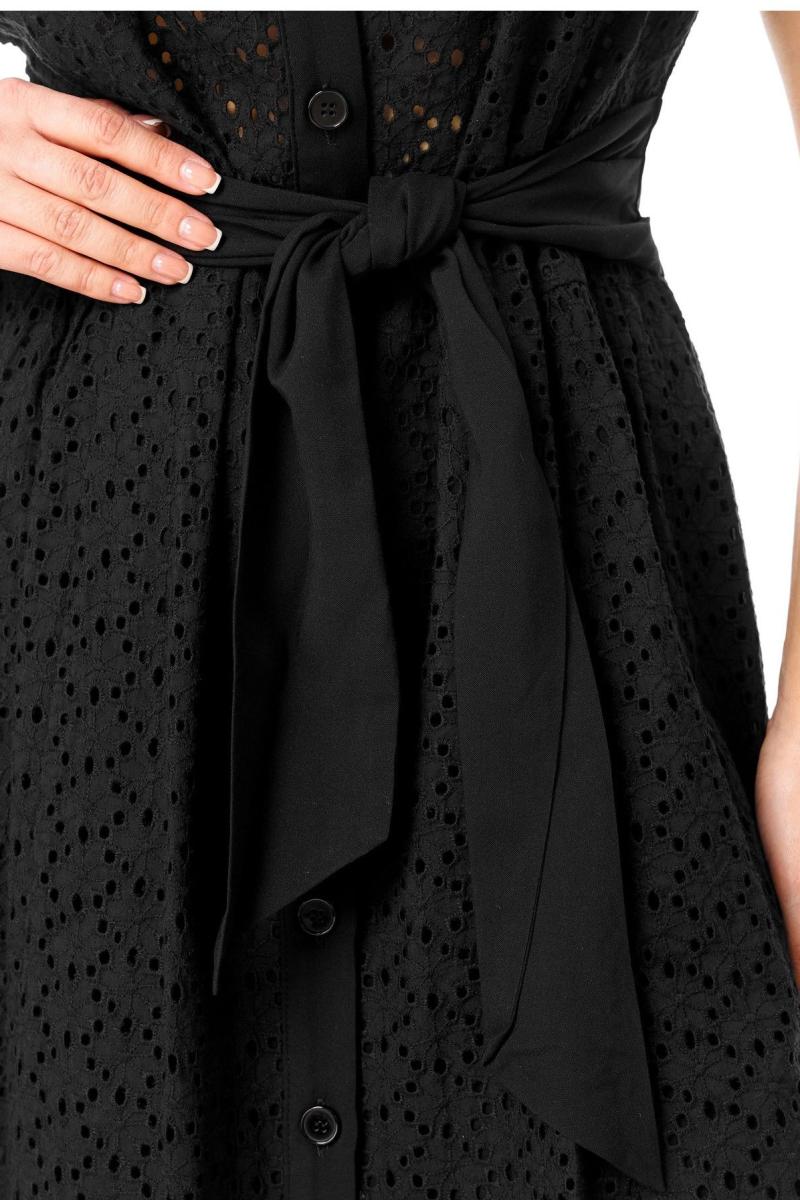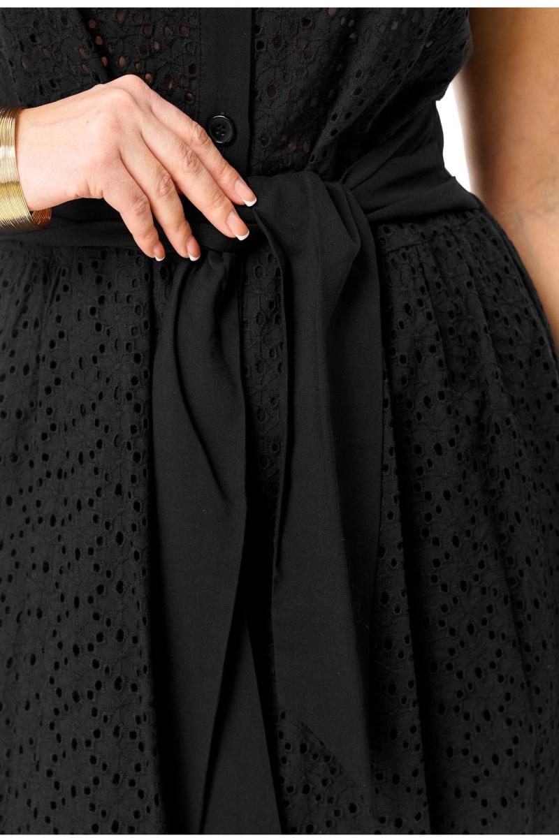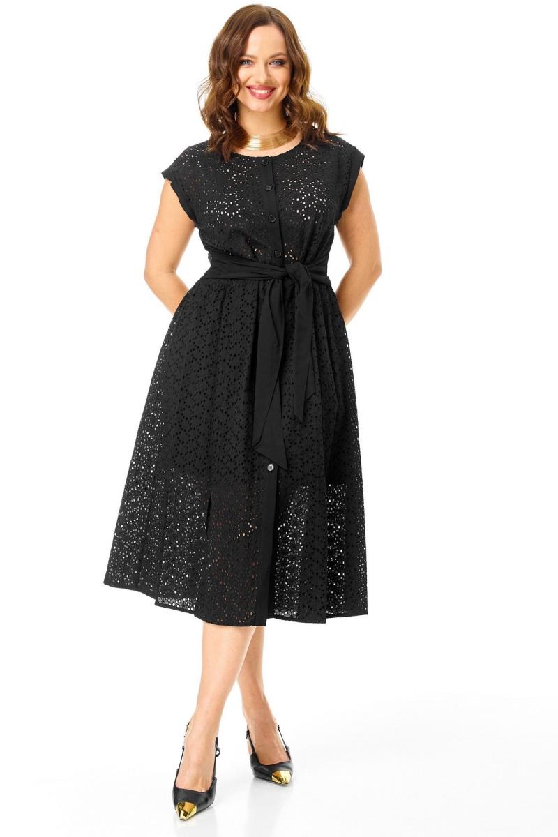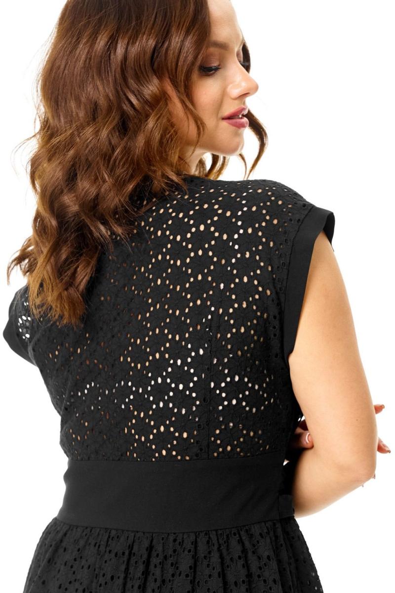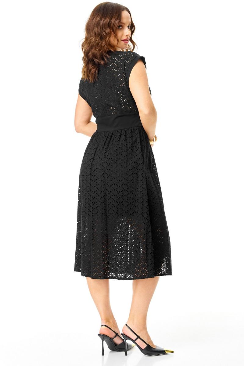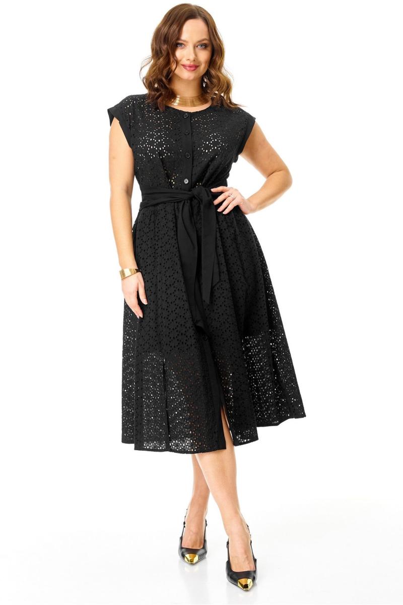 Элегантное платье миди прилегающего силуэта с юбкой на подкладке. Модель отличает отрезной пояс по линии талии спинки, переходящий в А-образную юбку со сборкой. Овальная горловина аккуратно обработана окантовкой. Лиф переда украшен отрезной планкой и рельефами, застегивается на петли и пуговицы. Спинка дополнена вытачками для идеальной посадки. По проймам расположены притачные "крылышки". От бокового шва переда отходит мягкий пояс со складками, переходящий в завязки. Юбка имеет разрезы по передним рельефам.