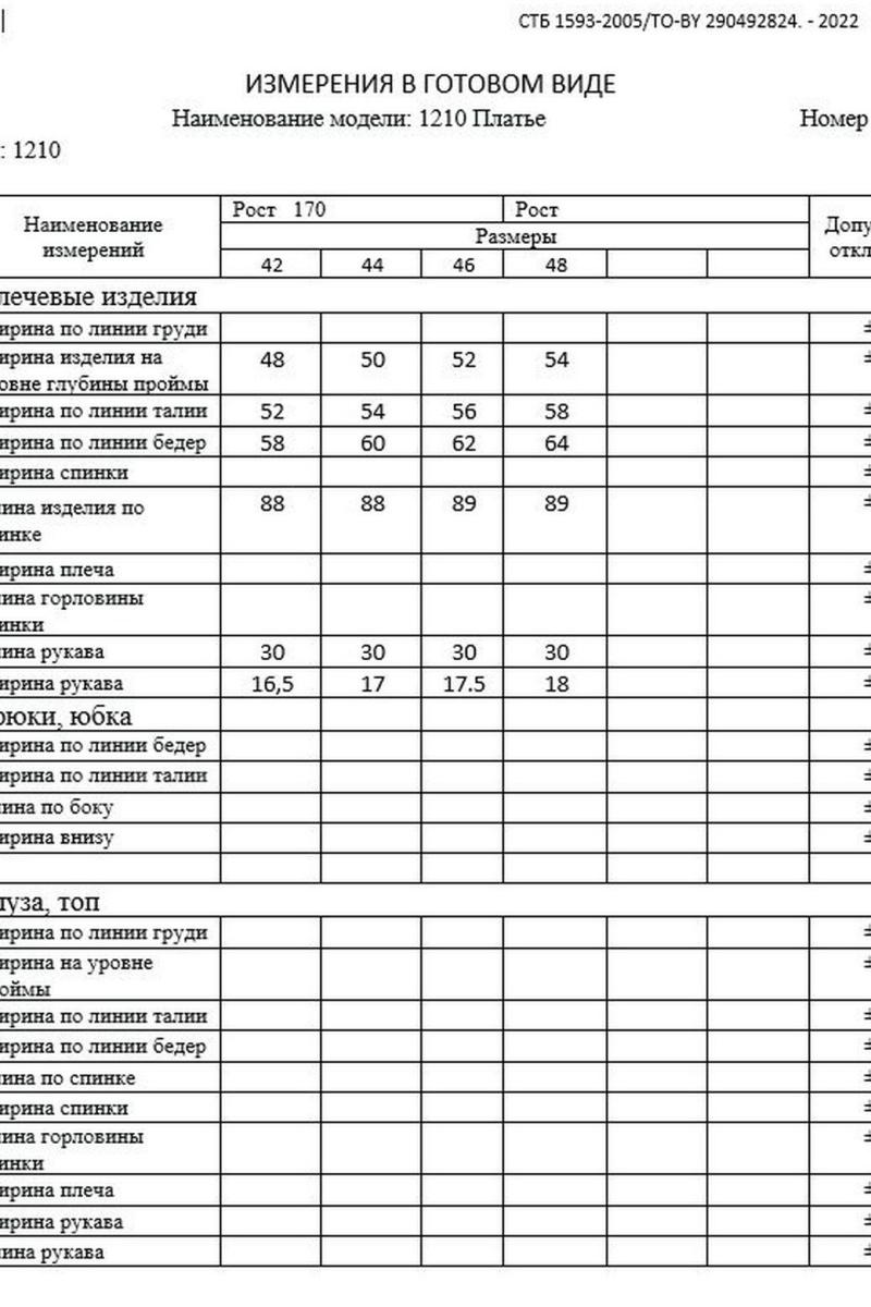 Таблица размеров