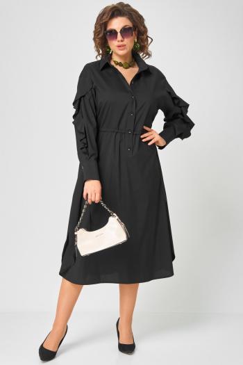 Платье выполнено из плательной ткани. Платье приталенного силуэта длиной миди. Лиф частично соединен с юбкой по центру переда. Спинка из двух частей с цельнокроенными завязками. Горловина округлой формы. Плечевой шов заужен. Рукав втачной, одношовный, со сборкой по окату, длиной ниже линии локтя. Низ рукава расширен, присборен и обработан эластичной тесьмой. В полотнище спинки в среднем шве разрез и застежка на потайную молнию. По линии талии в юбке эластичная тесьма. Платье на отлетной по низу подкладке.