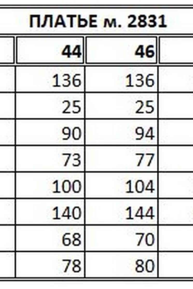 Таблица размеров