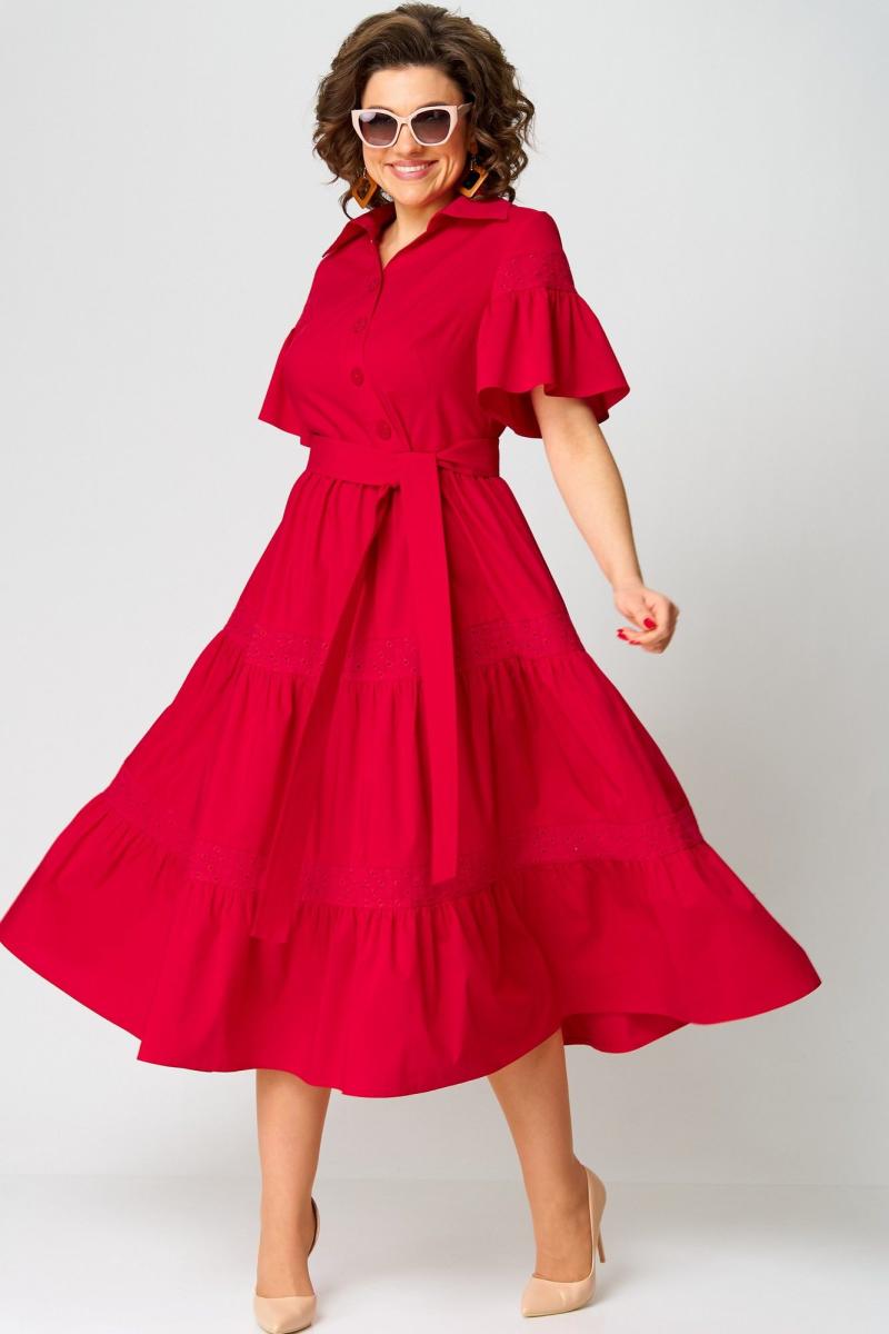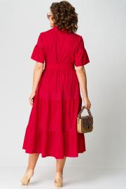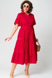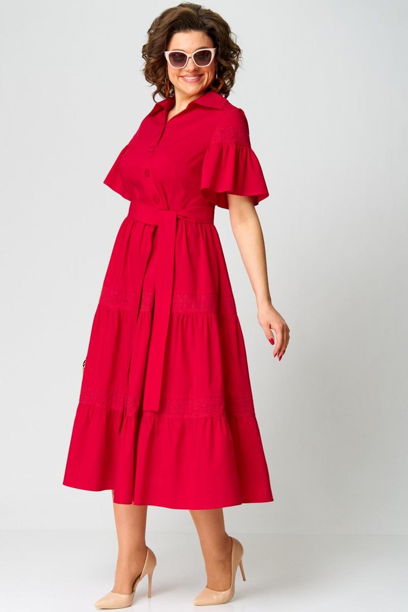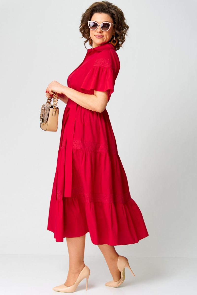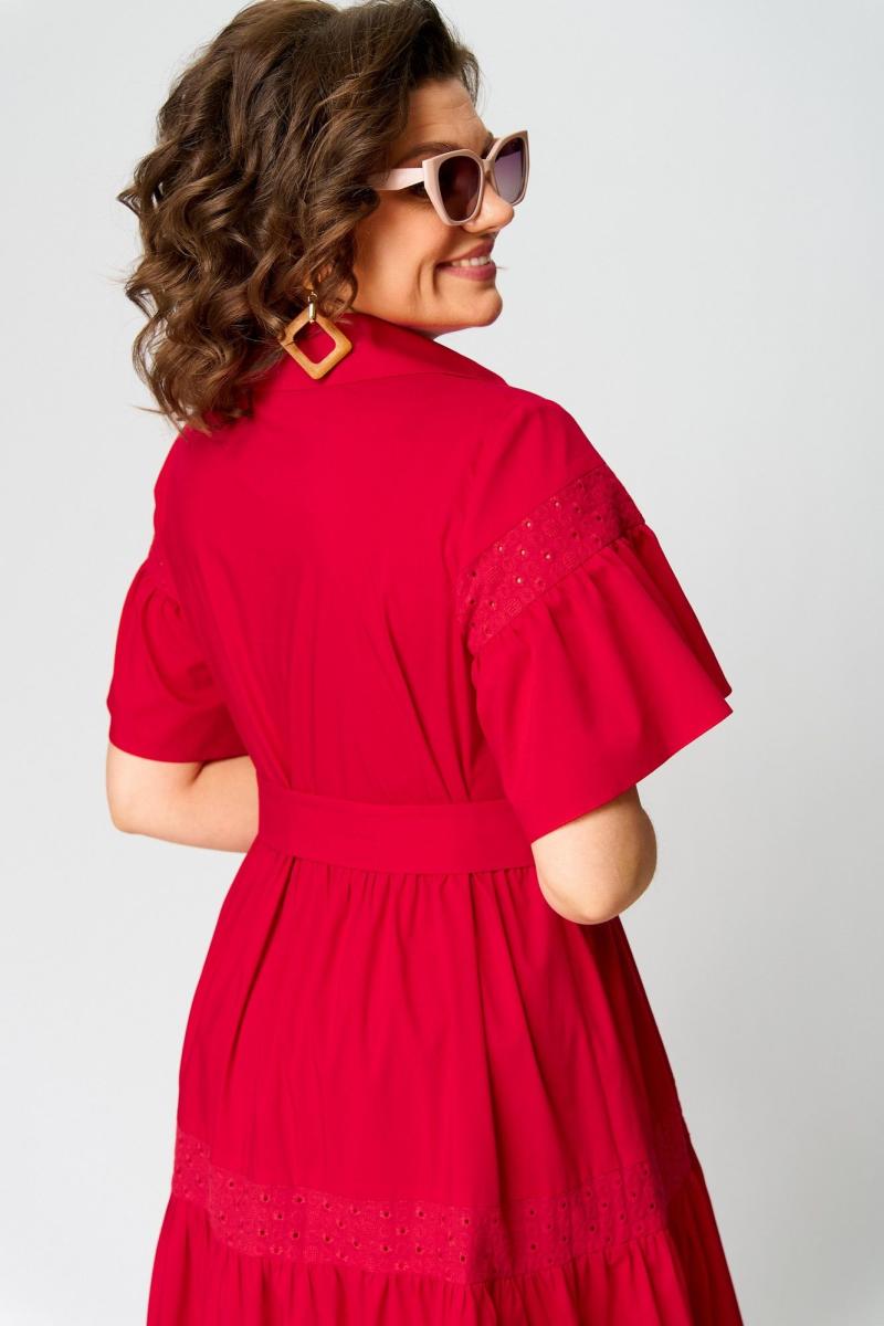 Платье женское нарядно-повседневное полуприлегающего силуэта до талии расширенное к низу. Выполнено из хлопка в сочетании с отделкой из хлопокового шитья. Вырез горловины воротик на стойке рубашечного типа, рукав втачной с отделочными вставками из шитья. расширенный к низу за счет встречных складок. По талии и по нижнему волану юбки сборка и отделочная вставка из шитья. По верхней части спинки фигурная кокетка из шитья. Застежка до талии на обметанные петли и пуговицы. Декором платья служит съемнй пояс из основной ткани. Подходит на рост 164-170