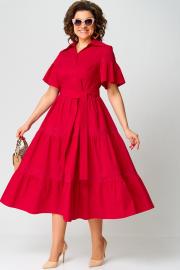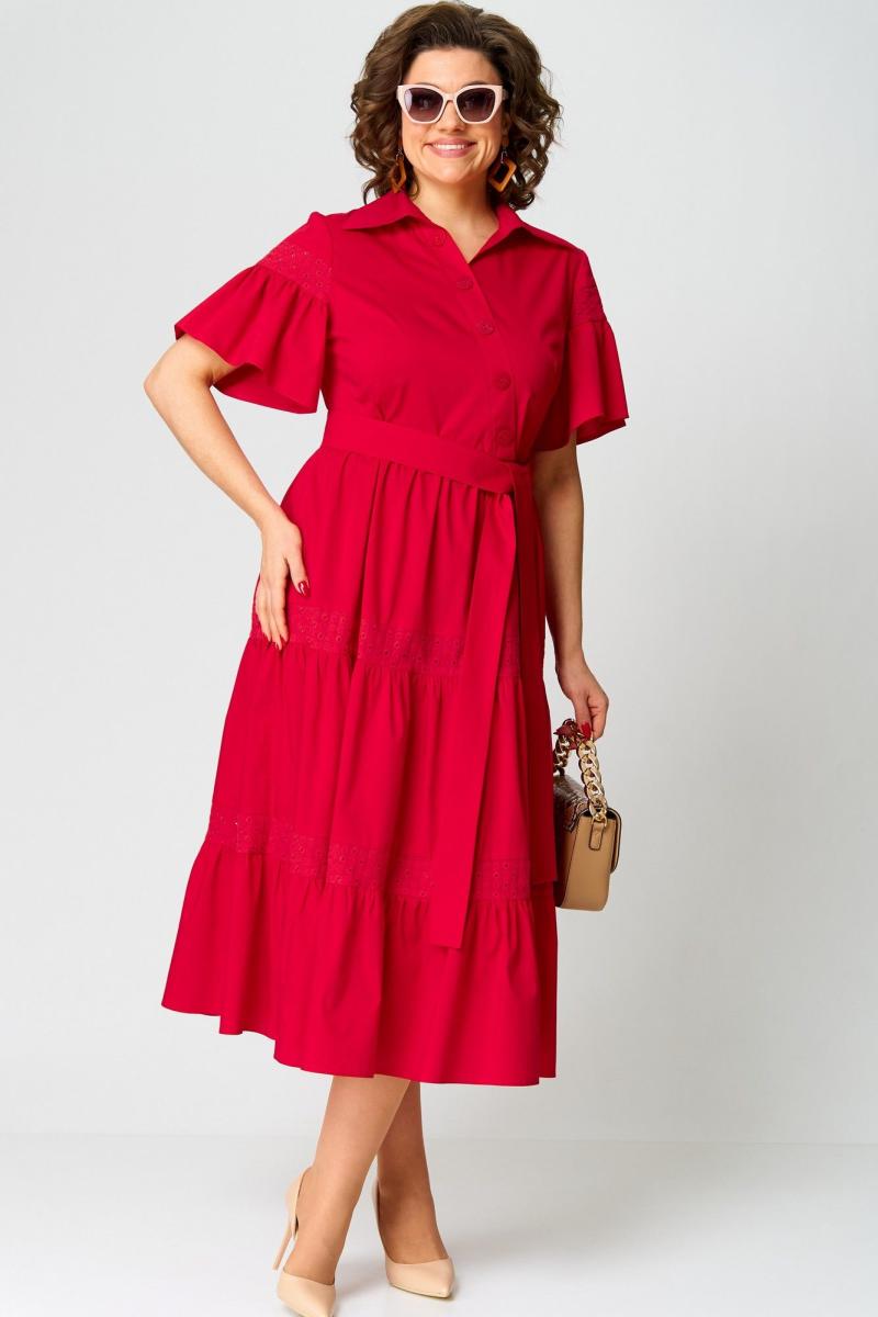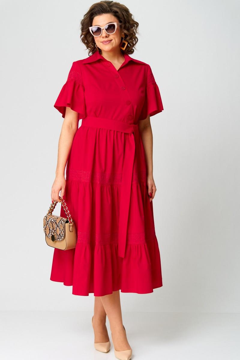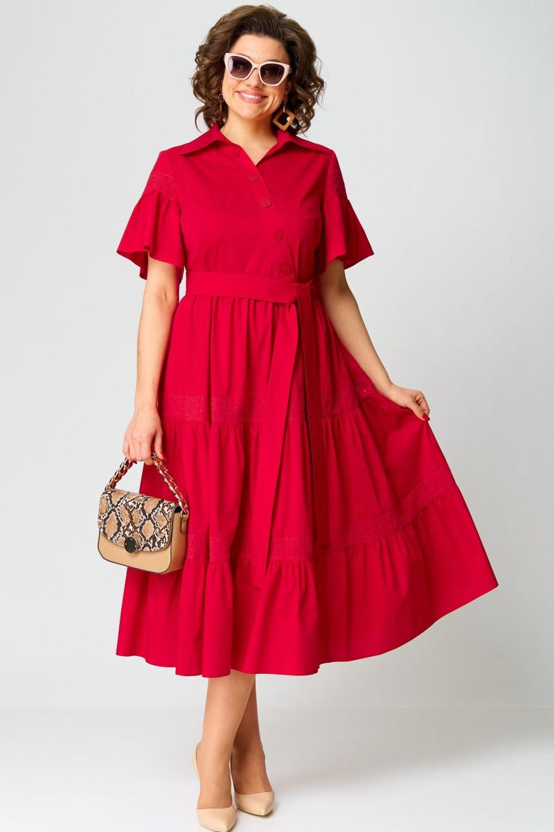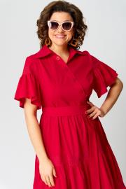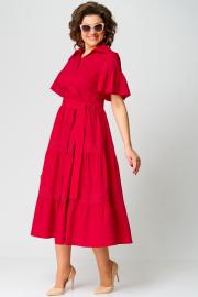 Платье женское нарядно-повседневное полуприлегающего силуэта до талии расширенное к низу. Выполнено из хлопка в сочетании с отделкой из хлопокового шитья. Вырез горловины воротик на стойке рубашечного типа, рукав втачной с отделочными вставками из шитья. расширенный к низу за счет встречных складок. По талии и по нижнему волану юбки сборка и отделочная вставка из шитья. По верхней части спинки фигурная кокетка из шитья. Застежка до талии на обметанные петли и пуговицы. Декором платья служит съемнй пояс из основной ткани. Подходит на рост 164-170