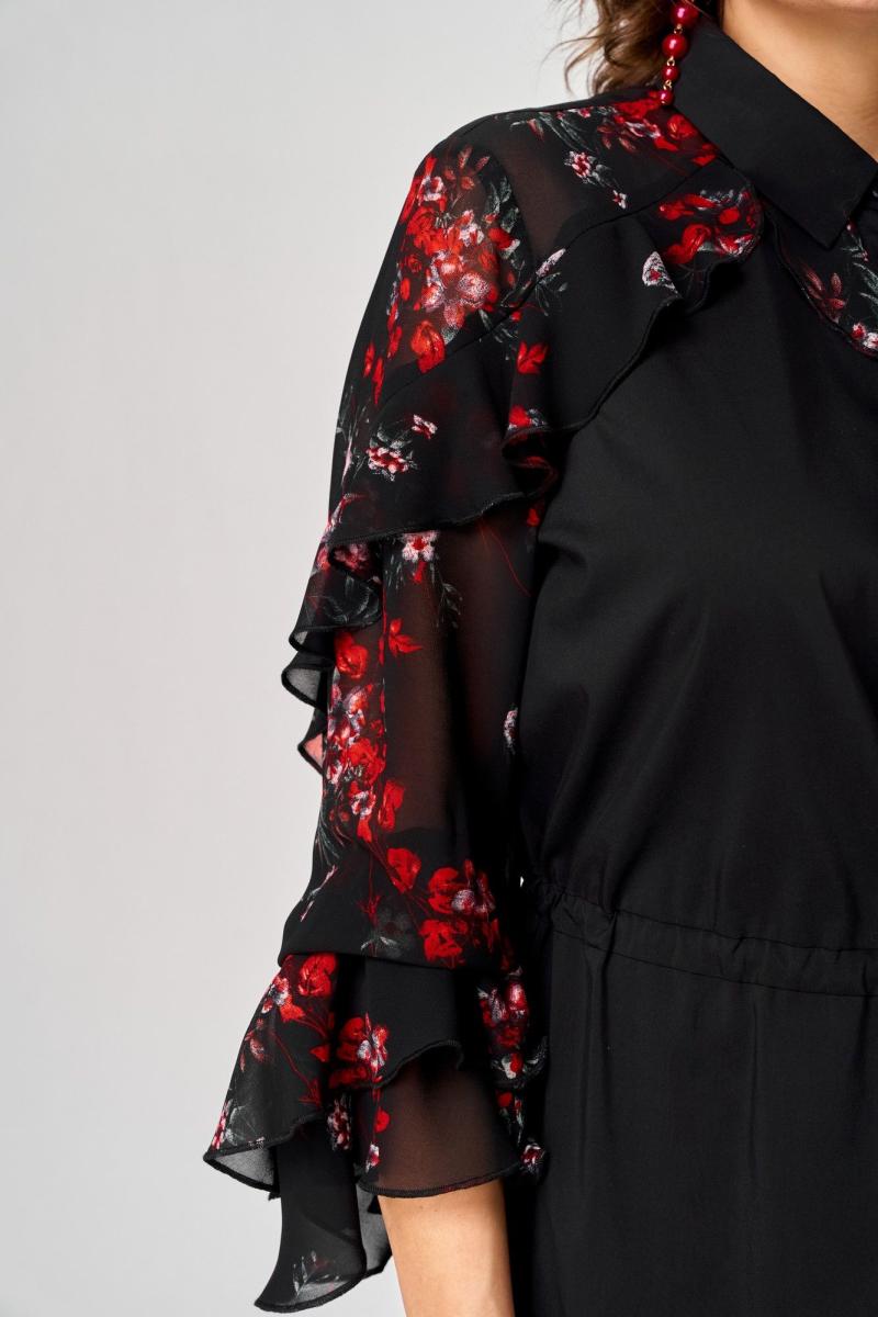 Платье женское шикарное стильное нарядно повседневное прямого силуэта. Выполнено из хорошего хлопка в сочетании с красивым легким воздушным принтованным шифоном. Вырез горловины вортник на стойке рубашечного типа, застежка доверху на обметанные петли и пуговицы, что дает возможность регулировать глубину декальте. Рукав втачной по низу на притачной манжете из двух воланов. По талии втянута кулиса с помощью которой регулируется желаемый размер талии и скрадываются все недостатки. Низ платья в стильном современном дизайне - фигурный. В боковых швах обработаны небольшие разрезы. Декором платья служат очень красивые воланы из шифона.