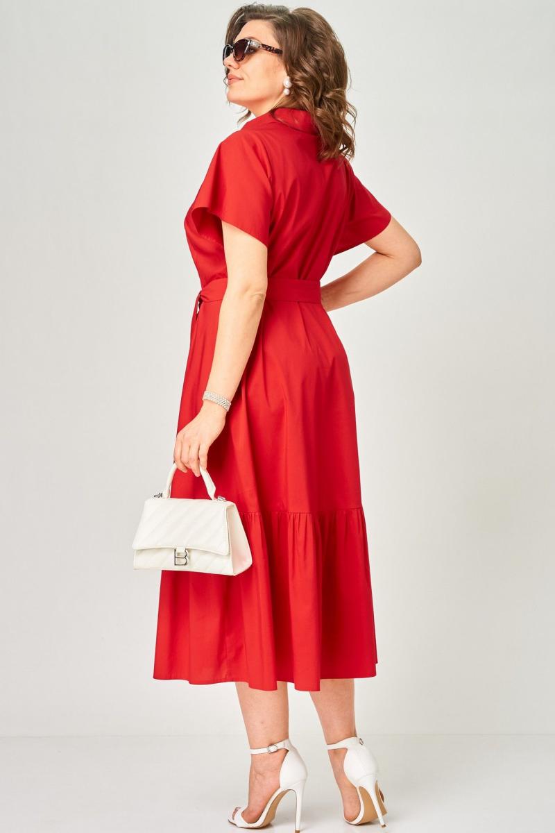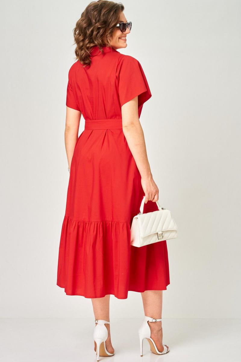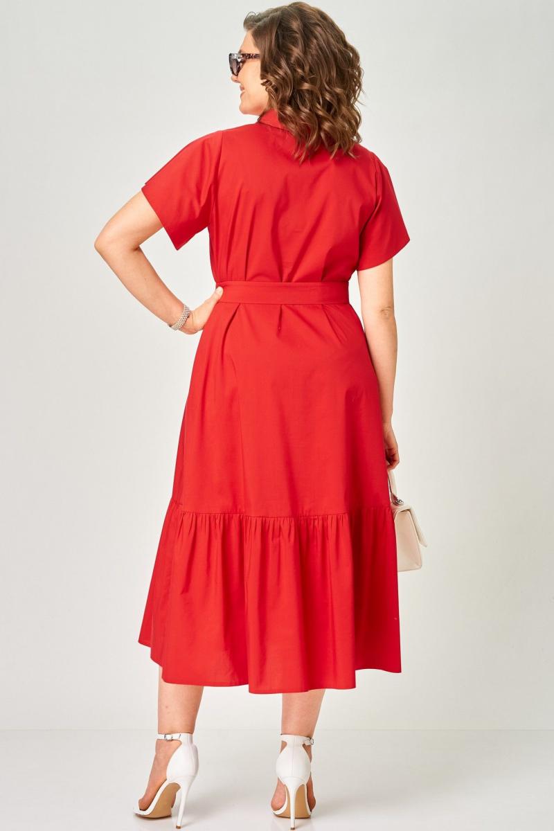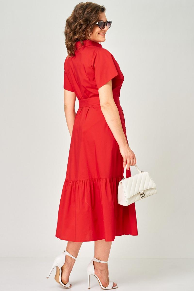 Платье элегантное красивое женское нарядное повседневное полуприлегающего силуэта расширенное к низу. Выполнено из хорошего красивого однотонного хлопка.Вырез горловины фигурный, что придает изделию "изюминку" воротник на стойке рубашечного типа. Рукав спущенный по низу с воланом собранным на сборку, что делает элемент воздешным и легким. Платье отрезное по талии. Юбка ассиметричная с застежкой доверху на обметанные петли и пуговицы. По низу юбки притачной волан, в боковых швах обработаны карманы. Декором платья служит дизайн ткани, съемный пояс из основной ткани и отделочные пуговицы.