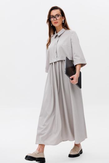 Модное платье длины миди - это идеальный выбор для любого торжества. Роскошное наполнение лаконичных форм - эта идея воплощена в необыкновенно женственном полуприлегающем силуэте лифа и романтичной конической юбке. Покрой - втачной, воротник - апаш, рукав - двухшовный. Полочки с центральным швом и вертикальными рельефами, лиф спинки как бы повторяет полочку. Нижняя часть платья - коническая. Модель дополнена съёмным поясом с пряжкой. Длина платья около 110 см, длина рукава около 60 см.