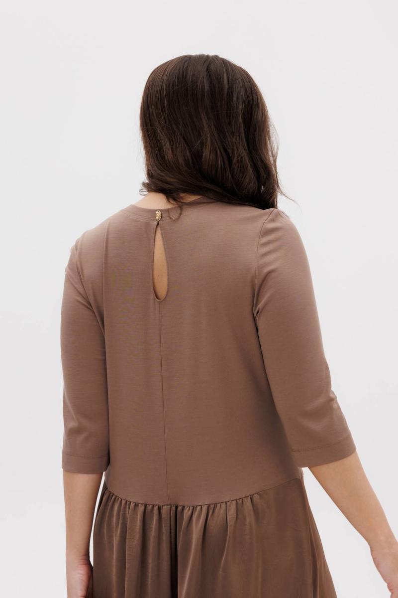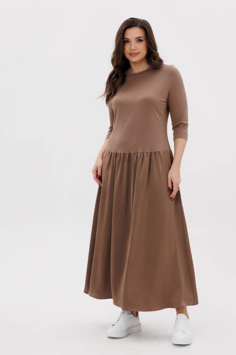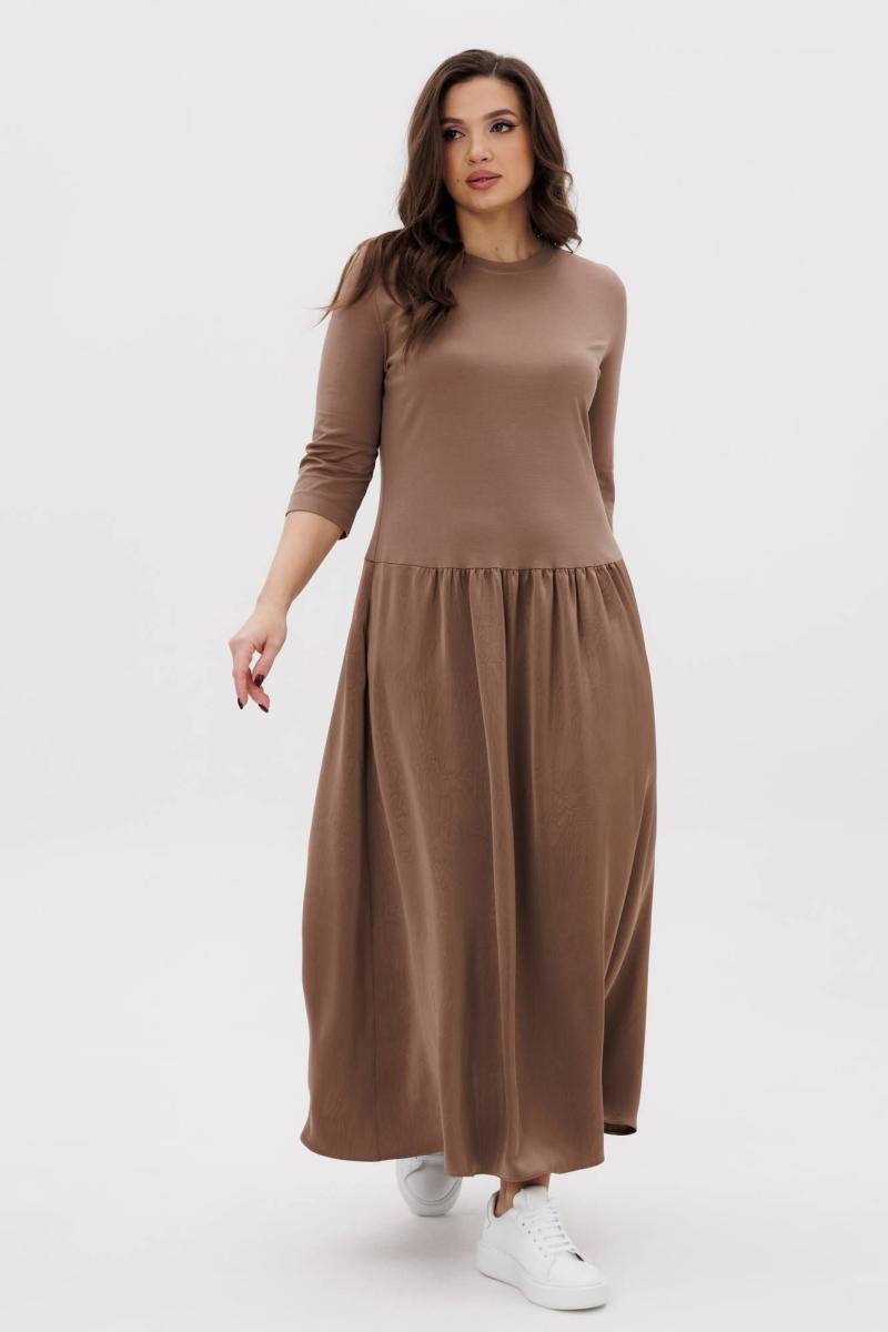 В этом платье Вы будете чувствовать себя такой лёгкой и воздушной, как летом. Ветер играет с волосами, а невесомое платье нежным шёлком скользит по ногам. Пришло время дышать полной грудью! Свободный силуэт, втачной покрой, круглая горловина с эффектной каплей на спине. Верх платья - из мягкого трикотажа, низ - из невероятного вискозного крэшевого полотна. Длина платья около 130 см