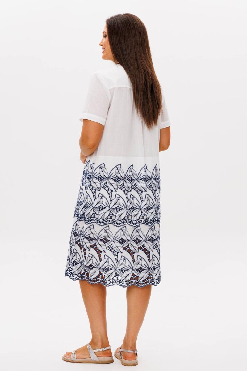 Платье из батиста, очень тонкое и практически не ощутимо ношении, в приоритете простота и удобство. Такой вариант всегда в моде. Белое платье с контрастной вышивкой и интересным кроем.